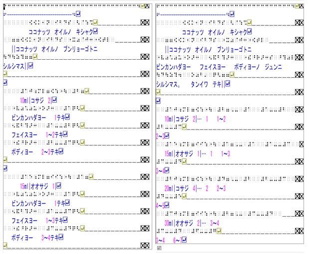 表などの場合は、表のタイトルを書いた次の行に3マス目から、単位は~ と書いてしまう方法を取ったり、点訳挿入符の説明の中に、割り込ませてしまったり、工夫をして、レ下がりが続かないようにします。
