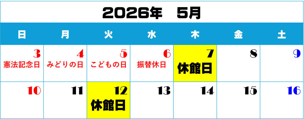 5月5日(火・こどもの日)と6日(水・振替休日)は、情報センターは開館します。5月7日(木)が休館日となりますので、ご注意ください。